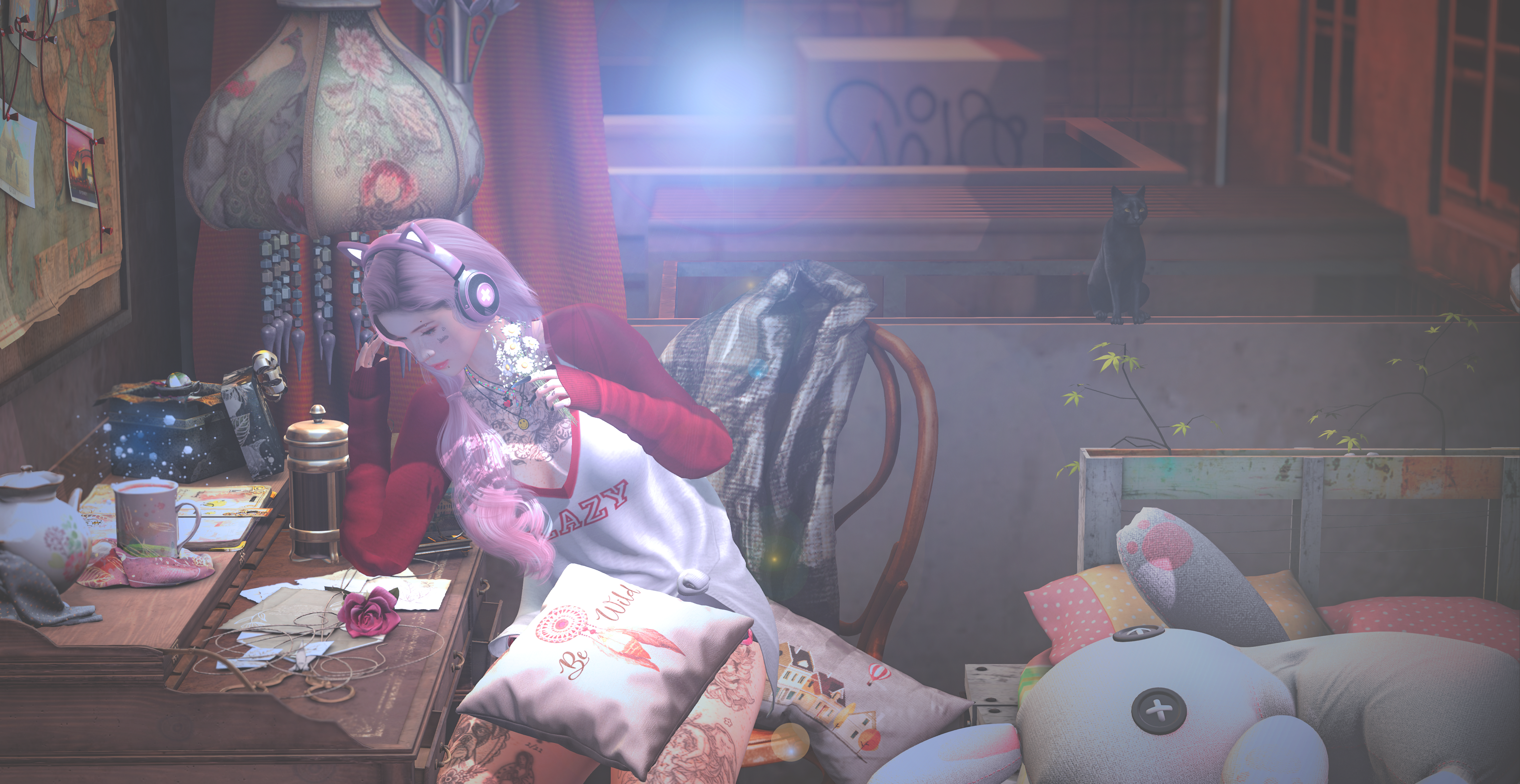 P.S. I fell in love with the Pitaya's Love Letters set found at Anthem and decided to make this sort of night and day transition. I always loved the idea of writing letters. The smell of old paper, smudged ink, trying to make out handwritings and most of all, that excitement of having an actual physical letter you can slip into your wallet. xD
