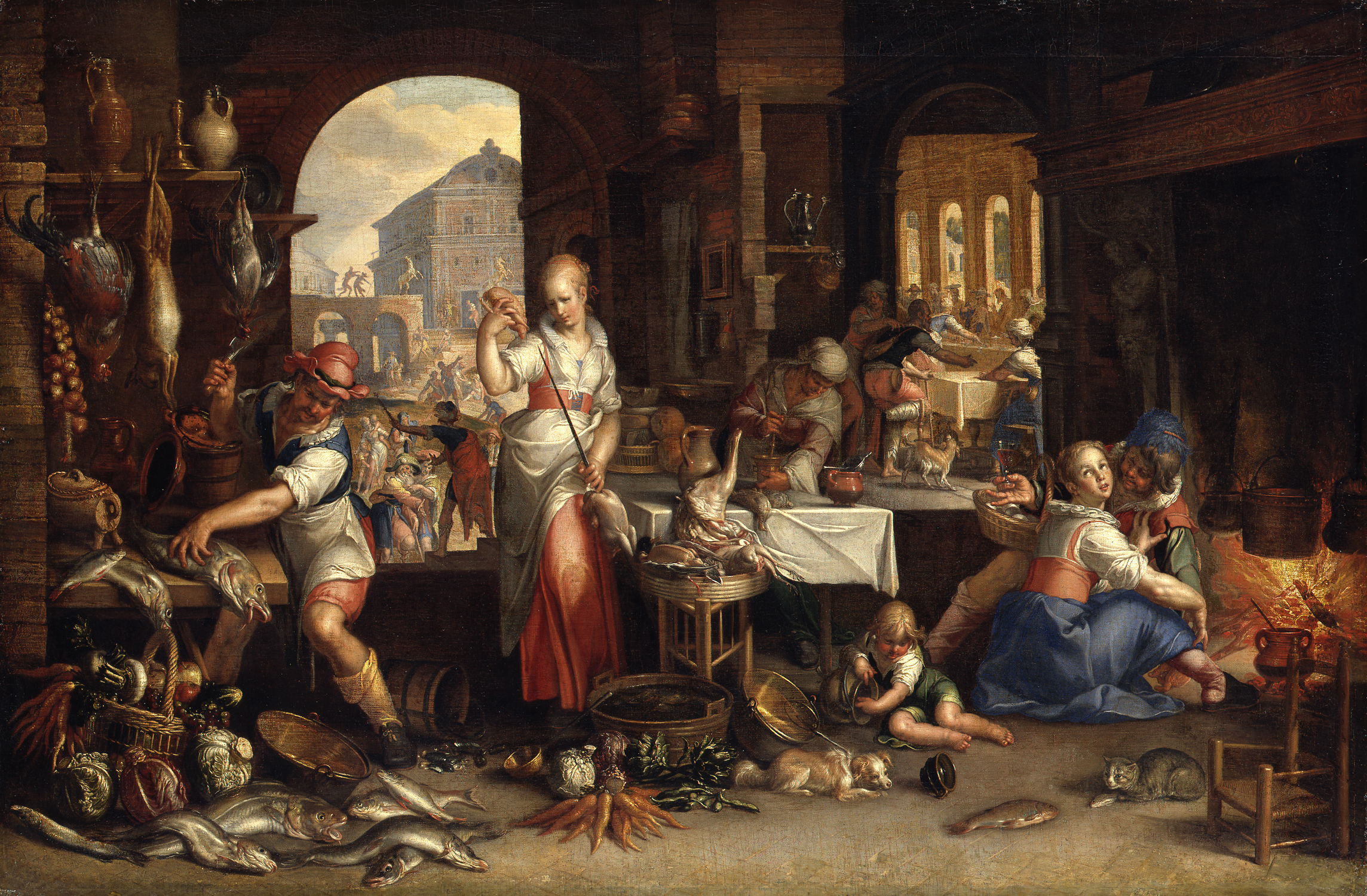 Dargestellt ist das Gleichnis vom verlorenenen Sohn. Ich hoffe sehr, dass es mir beim Begradigen der stark stürzenden Linien gelungen sein möge, die originalen Proportionen wiederherzustellen. Falls mir das nicht geglückt sein sollte, bitte ich um Nachsicht.