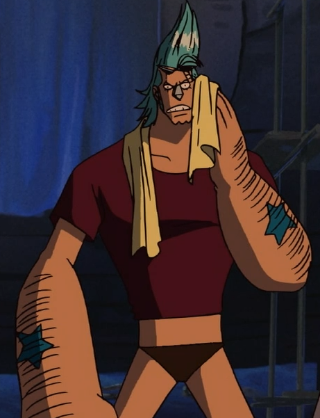 Like Luffy and Zoro, I used his post-timeskip design, but with his pre-timeskip hairstyle, which is more iconic and makes the character more recognizable. He's usually bald, but he's a cyborg, and one of his abilities is to change his haristyle at will by pressing his nose, so I gave him his classic hairstyle, which he did sport briefly towards the end of the Punk Hazard arc.