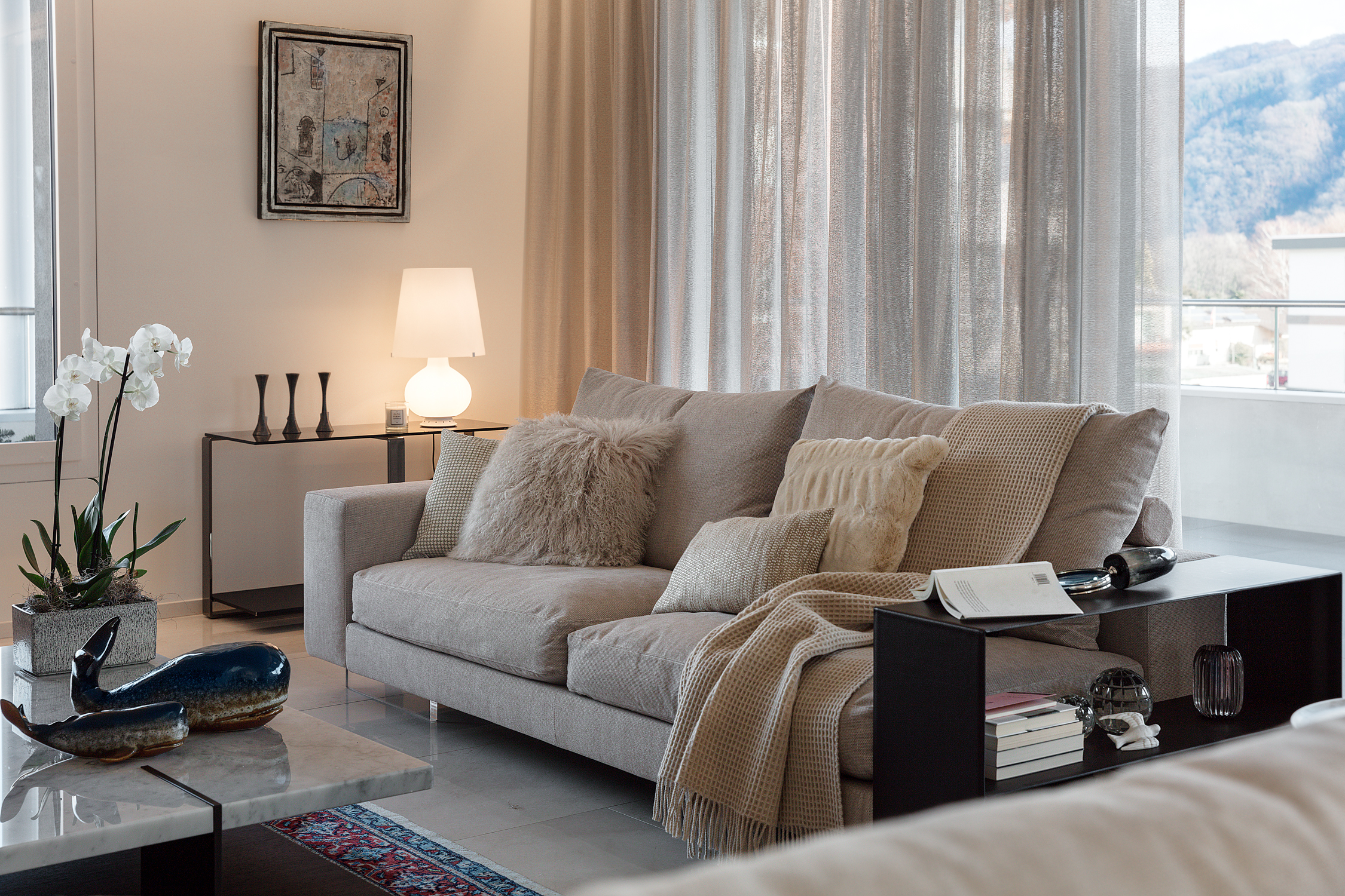 Stiamo scegliendo i tessuti leggeri per le tende in uno dei miei recenti progetti. Ampie superfici vetrate alla sera assomigliano ad un abisso nero , e noi, insieme con la proprietaria abbiamo deciso di ricorrere all’utilizzo di tende a rete. Compromesso vincente, per riscaldare l’interno, schermirsi dagli squali dei vicini, senza isolarsi completamente dall’ambiente circostante. Tale decisione ingombra meno perché usiamo un solo strato di tessuto, perfetto per la casa moderna! Sono solita a lasciatemi campioni prediletti a casa dei committenti, per poterli valutare con diversi tipi di luce durante i giorni potersene innamorare definitivamente.