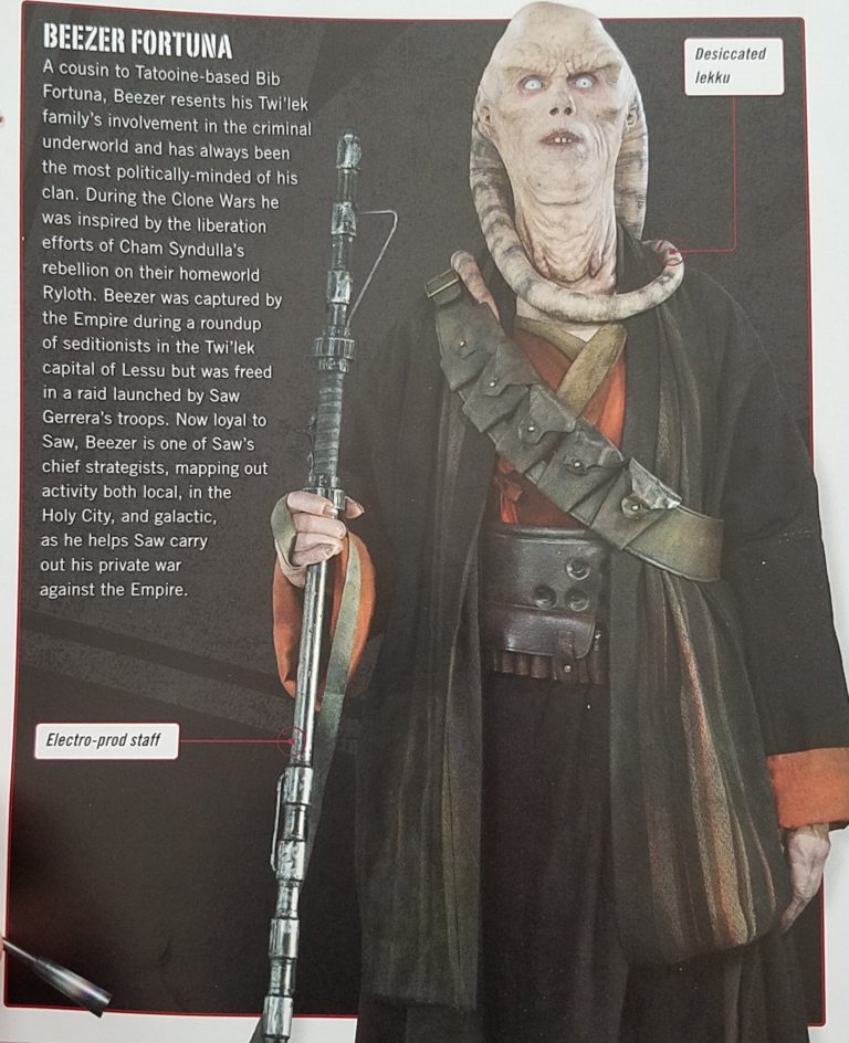 Beezer Fortuna was a male Twi'lek who lived during the Age of the Empire. A cousin of Bib Fortuna, Beezer was a member of the Partisans led by Saw Gerrera, and was on Jedha at the time of the Destruction of Jedha City.