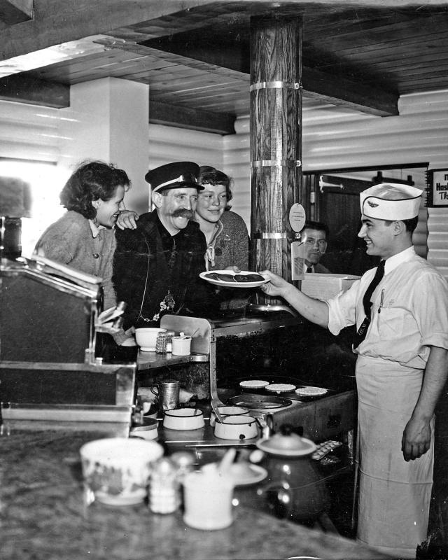 • comedian Mort Sahl (b. 1927) broke in at Berkely, CA White Log Tavern, a student hangout • colorful Klondike Gold Rush personality Martin Itjen visited Hollywood White Log Tavern c. 1935 [photo] • Bob's Big Boy founder Bob Wian (1914-1992) washed dishes at the Glendale White Log Tavern • Ken Bemis's son Bill later became Big Boy franchisee for DC/MD area, named his chain Ken's Big Boy after his father