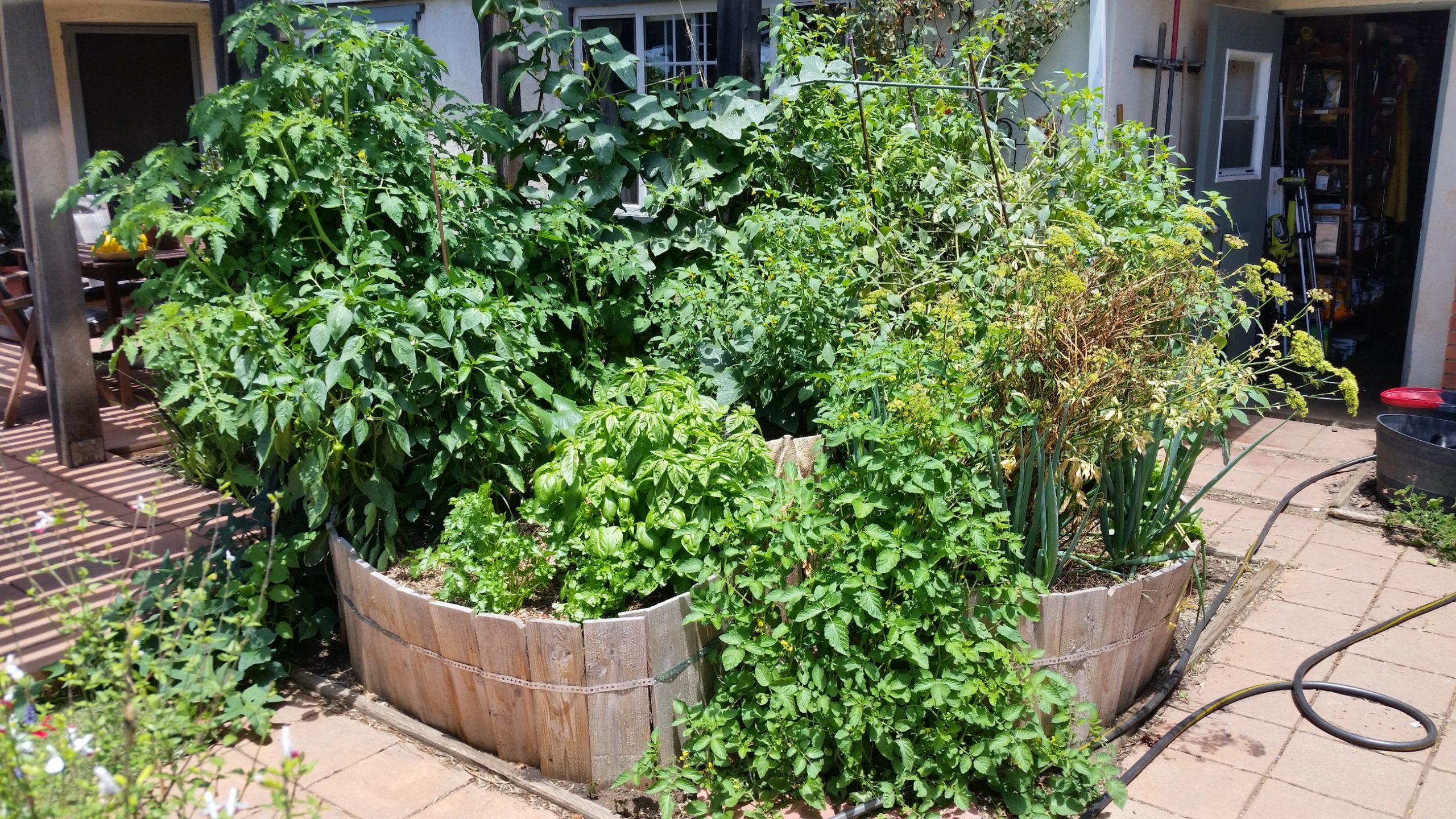 And I forgot to transplant the rogue tomato, so now it was starting to take over the entrance to the keyhole cutout.
