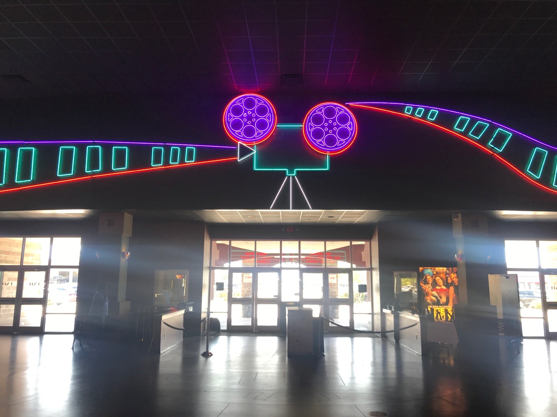 We’re looking here at the very cool projector neon that is located in the theater’s lobby, directly inside – and above – the entrances. I think this shot turned out pretty nicely!