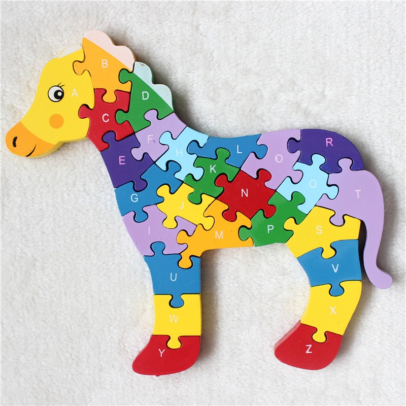 Product show Name:wooden puzzle animals style for learning education Material:wooden Size:27*25*1.5cm Age:3year Package:OPP package this cute puzzle is composed of 26 pieces different colors small woods,one sode is 26 Engalish letters and another side is...