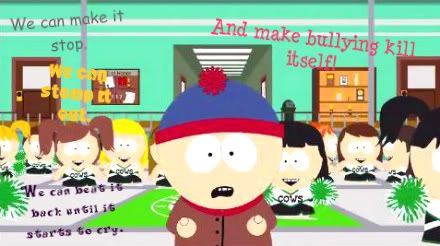 This picture represents a song that was made by South Park about suicide caused by bullying. The statistics have shown an increasing amount of suicides that have been cause by bullying and many times the evidence is present in emails and text messages.